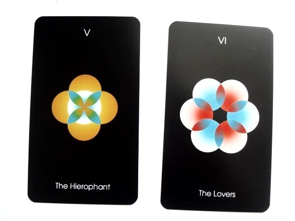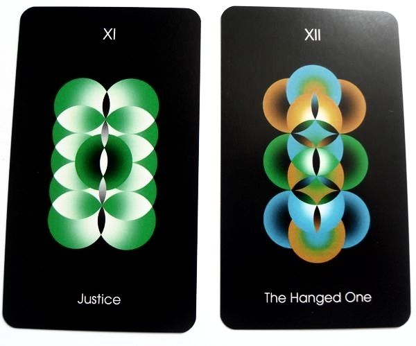 I think that my love for The Orbifold Tarot is actually a reflection of my love for Tarot as a system overall. I'm one of those people who eats, breathes and sleeps Tarot. I work with it as a full-time job, I teach other people to use the system and I've had Tarot in my life since I was around the age of thirteen. Tarot is one of the very first words which comes out of my mouth when people ask me about passions and pastimes. For me, disconnecting myself from the illustrative aspect of a Tarot deck and succumbing to an experience which only involves symmetry, shape and colour against monochromatic backgrounds was decidedly trippy!